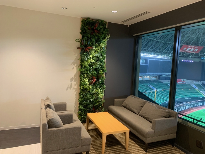 今回、福岡市中央区地行にありますヤフオクドーム内のスーパーボックスの壁面緑化をさせて頂きました。
